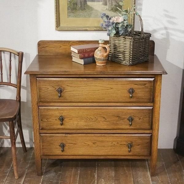 英国イギリスアンティーク家具 1930年代 チェスト 整理タンス 美しい杢目 オーク材 B587