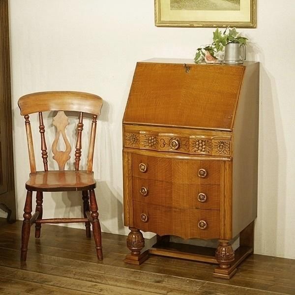 英国イギリスアンティーク家具 ライティングビューロー 美しい彫刻 デスク 薔薇の取っ手 机 バルボスレッグ A711