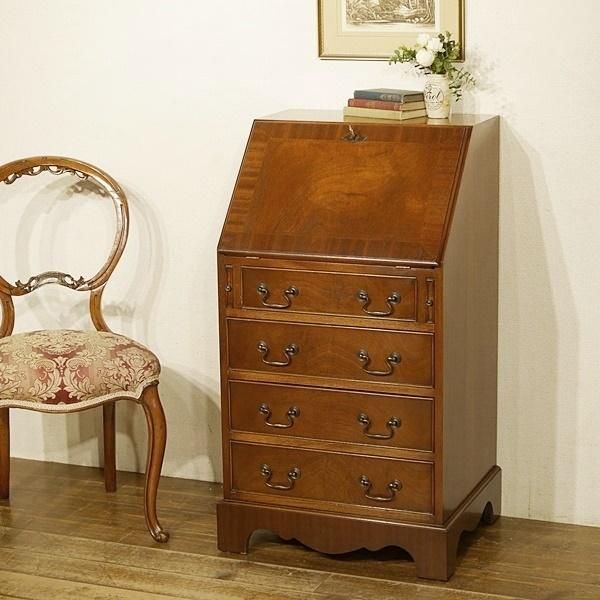 英国イギリスアンティーク家具 ライティングビューロー 珍しいスリムタイプ 杢目も綺麗 デスク 机 A723