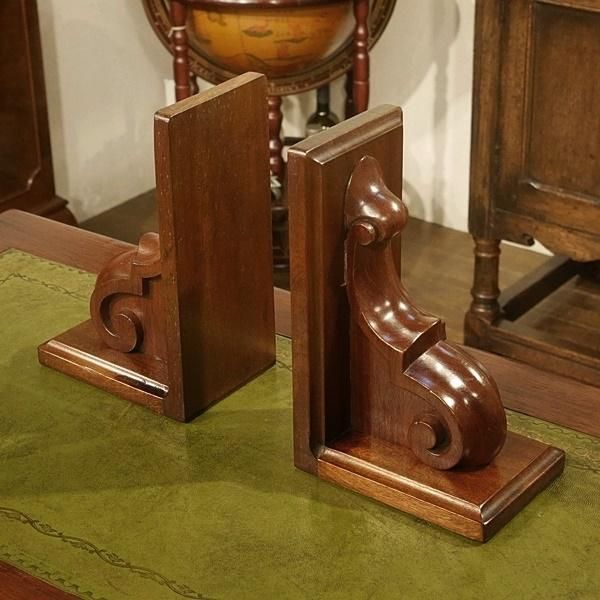 英国イギリスアンティーク ブックエンド ブックスタンド Bookend 本立て マホガニー材 彫刻 S002