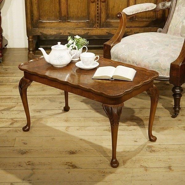 英国アンティーク家具 美しいフォルムと彫刻 コーヒーテーブル 猫脚 マホガニー A904