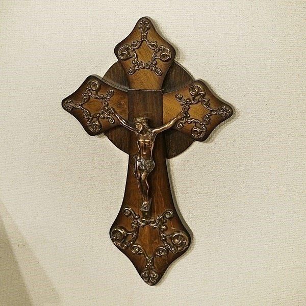 英国イギリスアンティーク 十字架 壁掛式 キリスト クロス イエス Crucifix 教会 S036