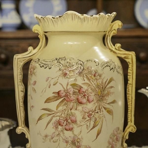 英国アンティーク 1930年代 アンティークベース Vase 花瓶 高さ22.5cm 陶器 花の絵柄 Pottery S060