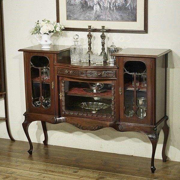 随所にカービングが施され、曲線のデザインで構成された格調高いキャビネットです。