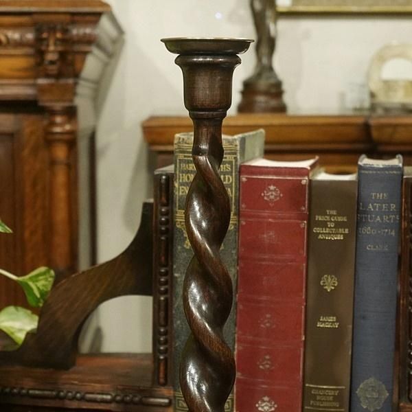 英国イギリスアンティーク1930年代 ペア ツイスト キャンドルスタンド 2本セット オーク材 燭台 真鍮 ローソク立て S082