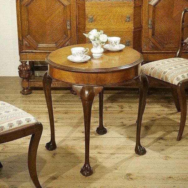英国アンティーク家具 ラウンドテーブル 丸テーブル ウォールナット材 ボール&クロウ カフェテーブル 猫脚 B139