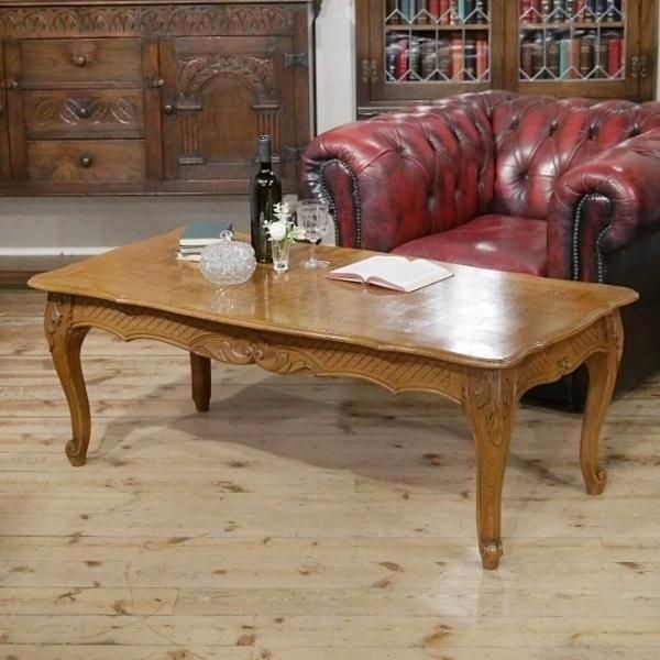 フレンチアンティーク家具 仏フランス 杢目のきれいなコーヒーテーブル センターテーブル 優雅な猫脚 オーク材 B291W