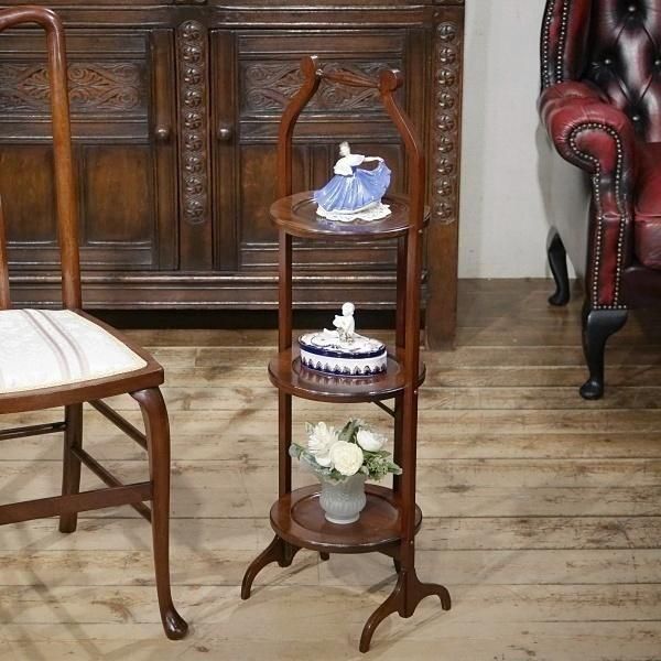 英国イギリスアンティーク家具 ケーキスタンド マホガニー材総無垢 折りたたみ式 フォールディング B447