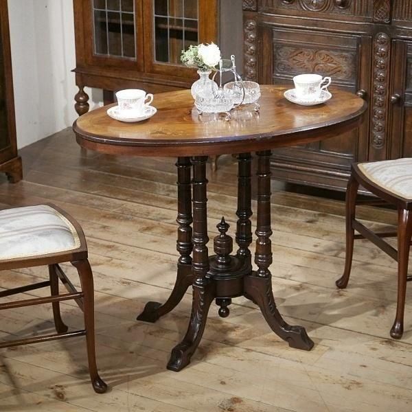 英国アンティーク家具 1890年代 ビクトリアン 杢目の美しい オーバルテーブル カフェテーブル 楕円 象嵌 B481W