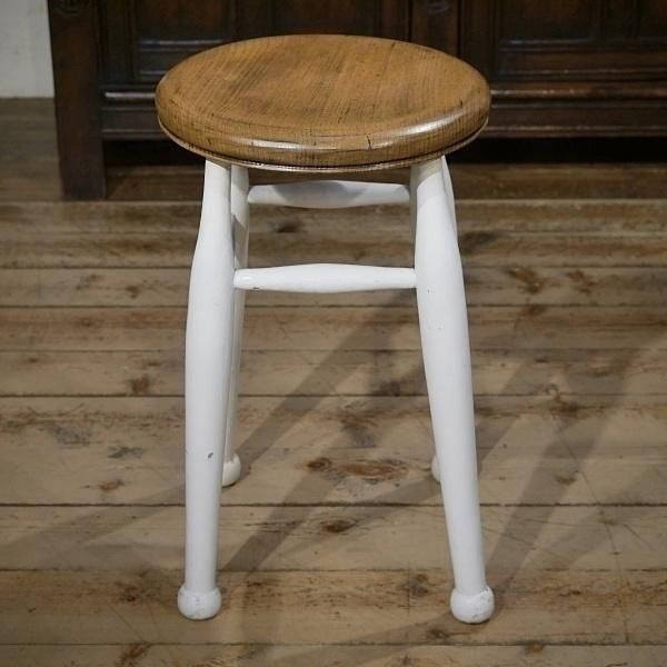 英国イギリスアンティーク家具 スツール ホワイトペイント エルム材 総無垢 チェア B486