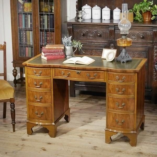 英国イギリスアンティーク家具 杢目が綺麗なデスク 1960年代 両袖机 レザー 本革貼 B495W
