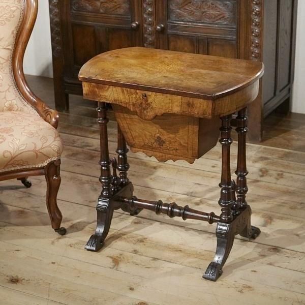 英国アンティーク家具 1910年代 エドワーディアン ソーイングボックス 裁縫箱 綺麗な象嵌 インレイ ウォールナット材 B522