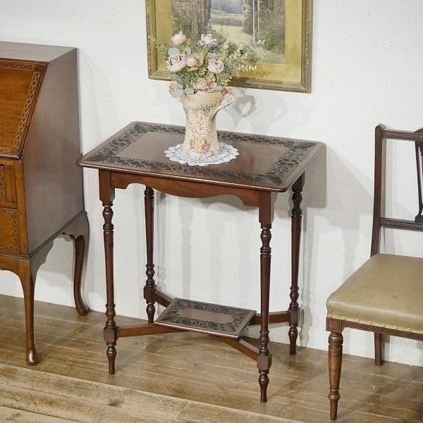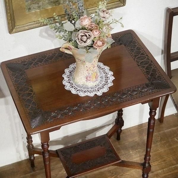 英国イギリスアンティーク家具 1910年代 エドワーディアン オケージョナルテーブル 見事な彫刻 マホガニー材無垢 B559