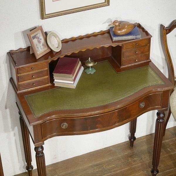 イギリス英国アンティーク家具 本革張りデスク 机 ホールテーブル マホガニー材 B575