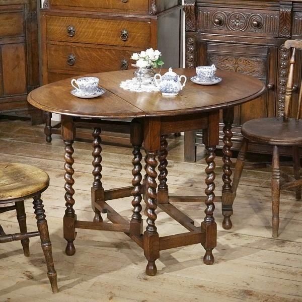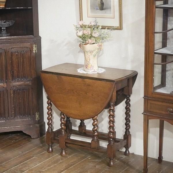 英国イギリスアンティーク家具 ゲートレッグテーブル 伸長式 カフェテーブル ツイストレッグ オーク材総無垢 B577