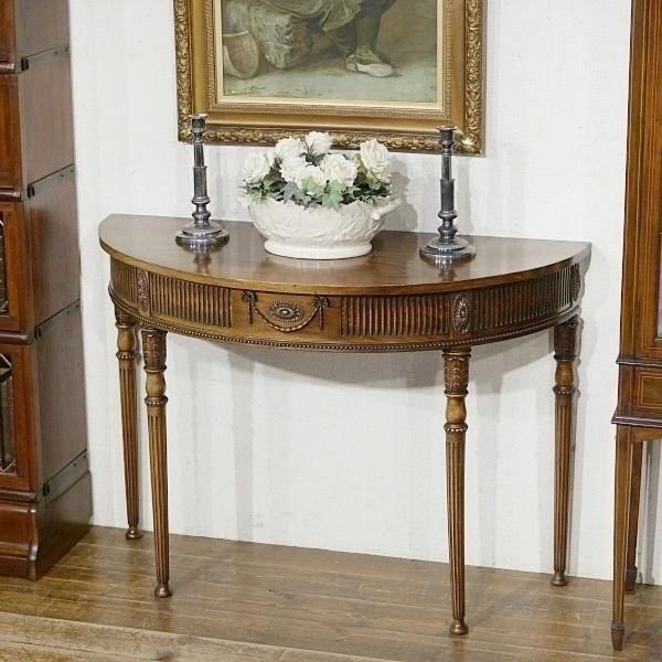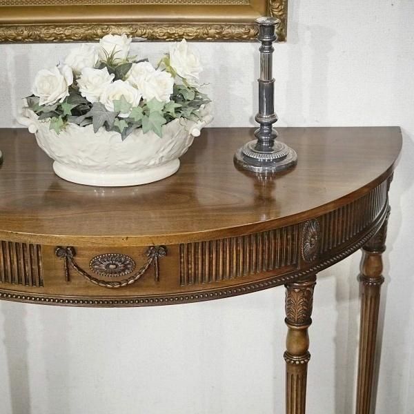 英国イギリスアンティーク家具 彫刻の美しいデミルーン コンソールテーブル 幅107.5cm 猫脚 マホガニー材総無垢 B580W